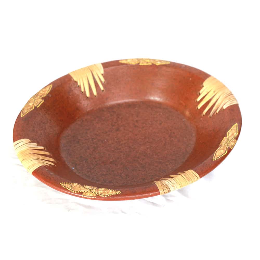Dieses handgefertigte Keramik-Set aus drei Schalen besticht durch seine warme Braunfärbung und die filigranen Seegras-Verzierungen an den Rändern. Die verschiedenen Größen bieten vielseitige Einsatzmöglichkeiten in Ihrem Zuhause.Im Set enthalten:Große Schüssel: 40 cm Ø – ideal für Obst, Salate oder dekorative Highlights.Mittlere Schüssel: 35 cm Ø – perfekt für Snacks und kleinere Speisen.Kleine Schüssel: 28 cm Ø – vielseitig verwendbar für Dips oder Beilagen.Jedes Stück ist ein liebevoll gefertigtes Unikat, das traditionelle balinesische Handwerkskunst mit modernem Design verbindet....