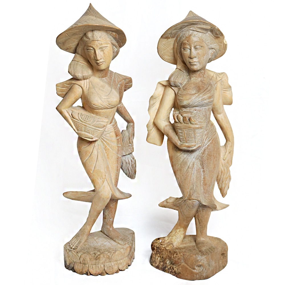 Elegante Lady-Statue mit balinesischer Greenstone-Schale, 60 cm