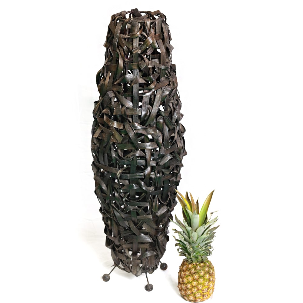 Diese Stehlampe wird in sorgfältiger Handarbeit gefertigt und verbindet balinesisches Flechtkunsthandwerk mit modernem Stil. Der Name
