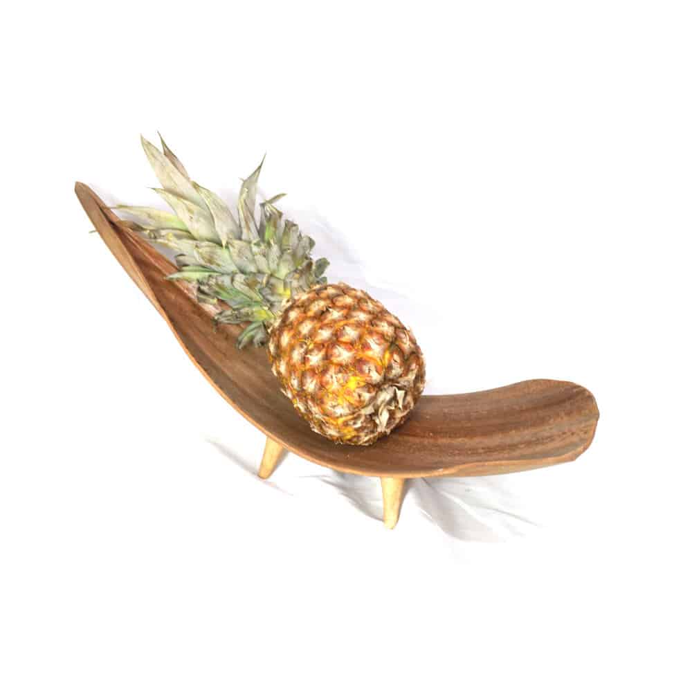 Diese handgefertigte Obstschale aus einem natürlichen Palmenblatt vereint rustikalen Charme mit praktischer Nutzbarkeit. Mit einer Länge von etwa 55 cm und einer eleganten, spitz zulaufenden Form eignet sie sich ideal zur Präsentation von Obst oder als stilvolles Deko-Element. Vier stabile Standfüße sorgen für sicheren Halt. Jedes Exemplar ist ein Unikat mit individuellen Farb- und Formnuancen....