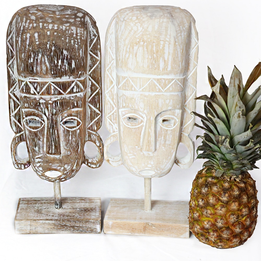 Dekorativer Aufsteller in Form einer balinesischen Maske, 40x15 cm, braun