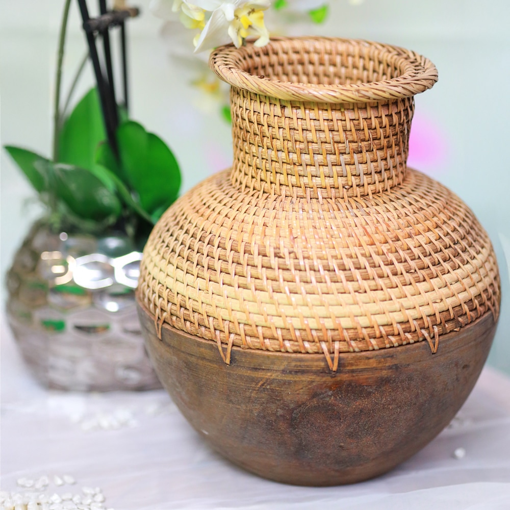 Dekorativer Krug aus Seegras und Teakholz – Handgefertigt