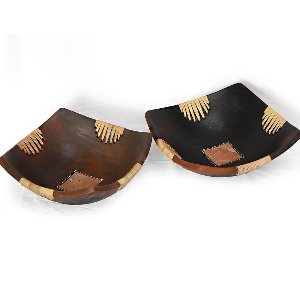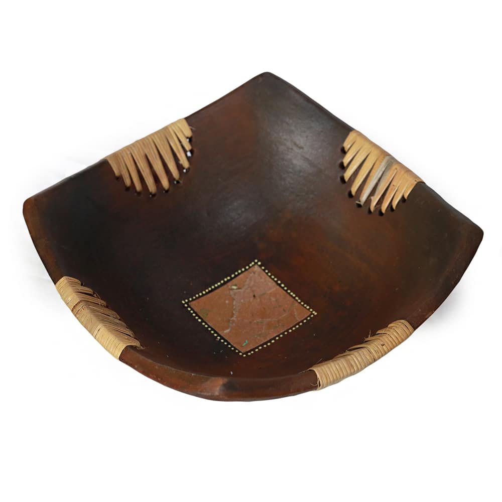 Diese handgefertigte Keramikschale besticht durch ihr modernes, eckiges Design und liebevoll eingearbeitete Rattanverzierungen. Mit einer Kantenlänge von 21 cm ist sie ein stilvolles und natürliches Highlight für jeden Raum....