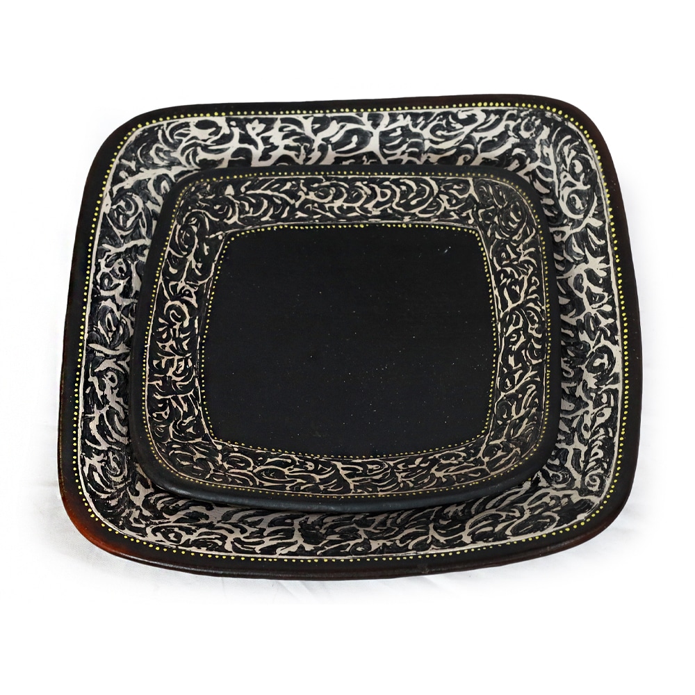 Elegantes Set aus schwarzen, eckigen Keramikschalen 35x35 cm & 26x26 cm