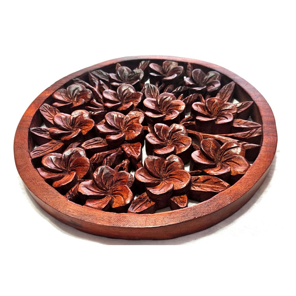 Setzen Sie stilvolle Akzente in Ihrem Zuhause mit dieser handgefertigten Wanddekoration aus hochwertigem Teakholz. Das kunstvolle Frangipani-Design mit 30 cm Durchmesser bringt exotischen Charme und balinesische Eleganz in jeden Raum....