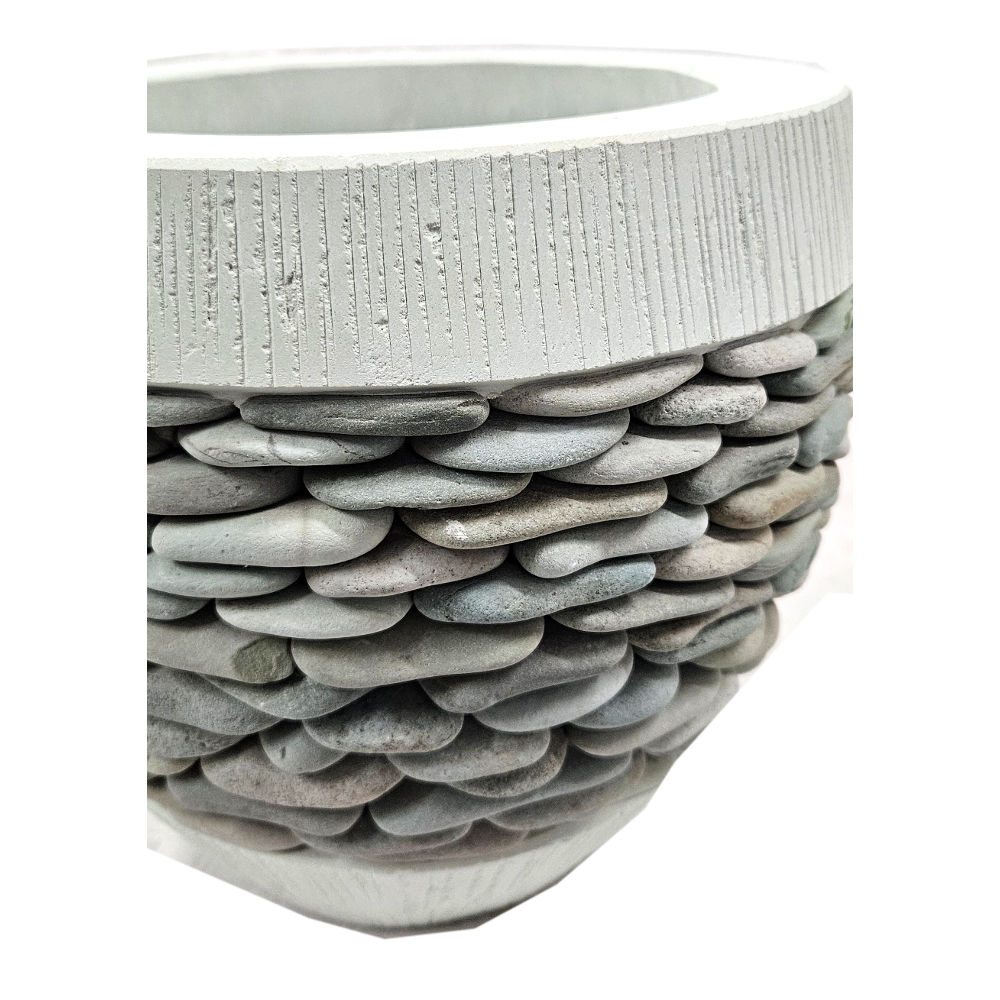 Großer Blumenübertopf mit Natursteinverzierung, Ø 29 cm