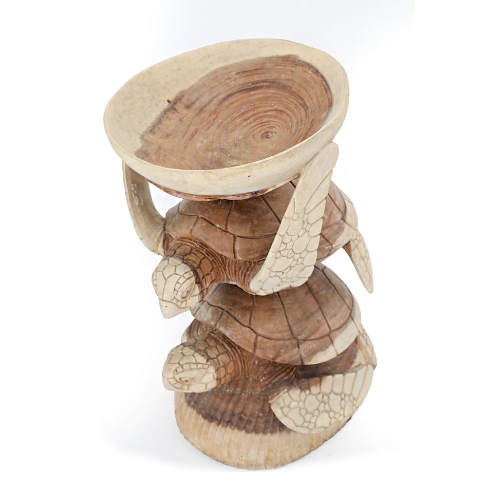 Diese beeindruckende Schale aus Suar-Holz verbindet kunstvolles Handwerk mit praktischer Vielseitigkeit. Zwei detailreich geschnitzte Schildkröten tragen eine großzügige Obstschale, die durch das warme, lackierte Holz in jedem Raum zum Hingucker wird. Handgefertigt auf Bali, besticht sie durch ihre feinen Details und natürliche Holzoptik....