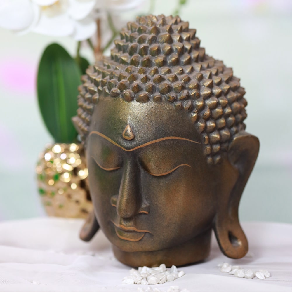 Dieser 21 cm hohe Buddha Kopf aus handgefertigtem Holz besticht durch sein klassisches Design und die kupferfarbene Oberfläche mit edler Alterspatina. Traditionell geschnitzt, strahlt er Ruhe und Harmonie aus und bringt spirituelle Tiefe in jeden Raum. Ein einzigartiges Kunstwerk balinesischer Handwerkskunst....