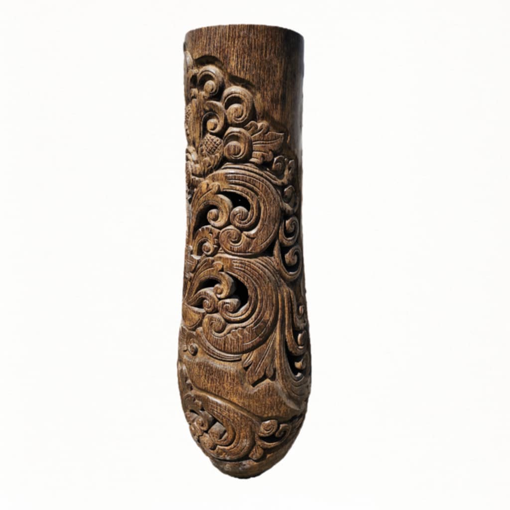Elegante Holzvase mit balinesischem Druckmuster, 25 cm hoch