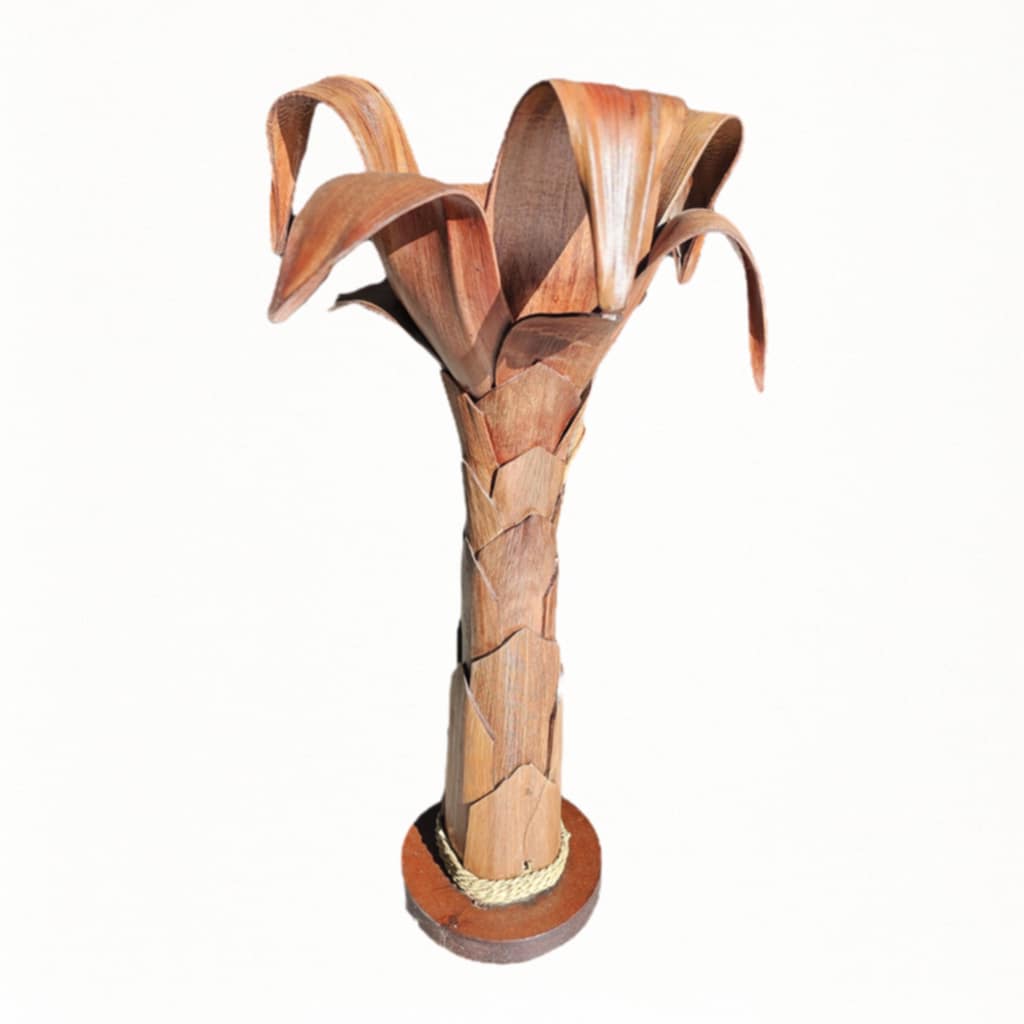 Die Lontarpalme ist auf Bali tief verwurzelt in der Kultur und symbolisiert tropisches Leben, Stabilität sowie wertvolle Materialien. Traditionell wurden auf getrockneten Palmblättern sogar heilige Schriften festgehalten. Unsere Lontara Palmenlampe greift diese Bedeutung auf: Stamm und Blätter sind aus natürlichen Palmblattfasern und Holz gefertigt und in einem satten Dunkelbraun gehalten, das an die Erde und Baumrinde erinnert.