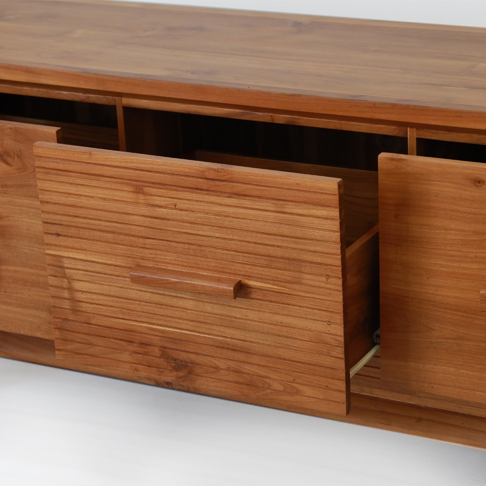 Rata Sideboard aus massivem Teakholz mit flacher Bauweise und Schubladen