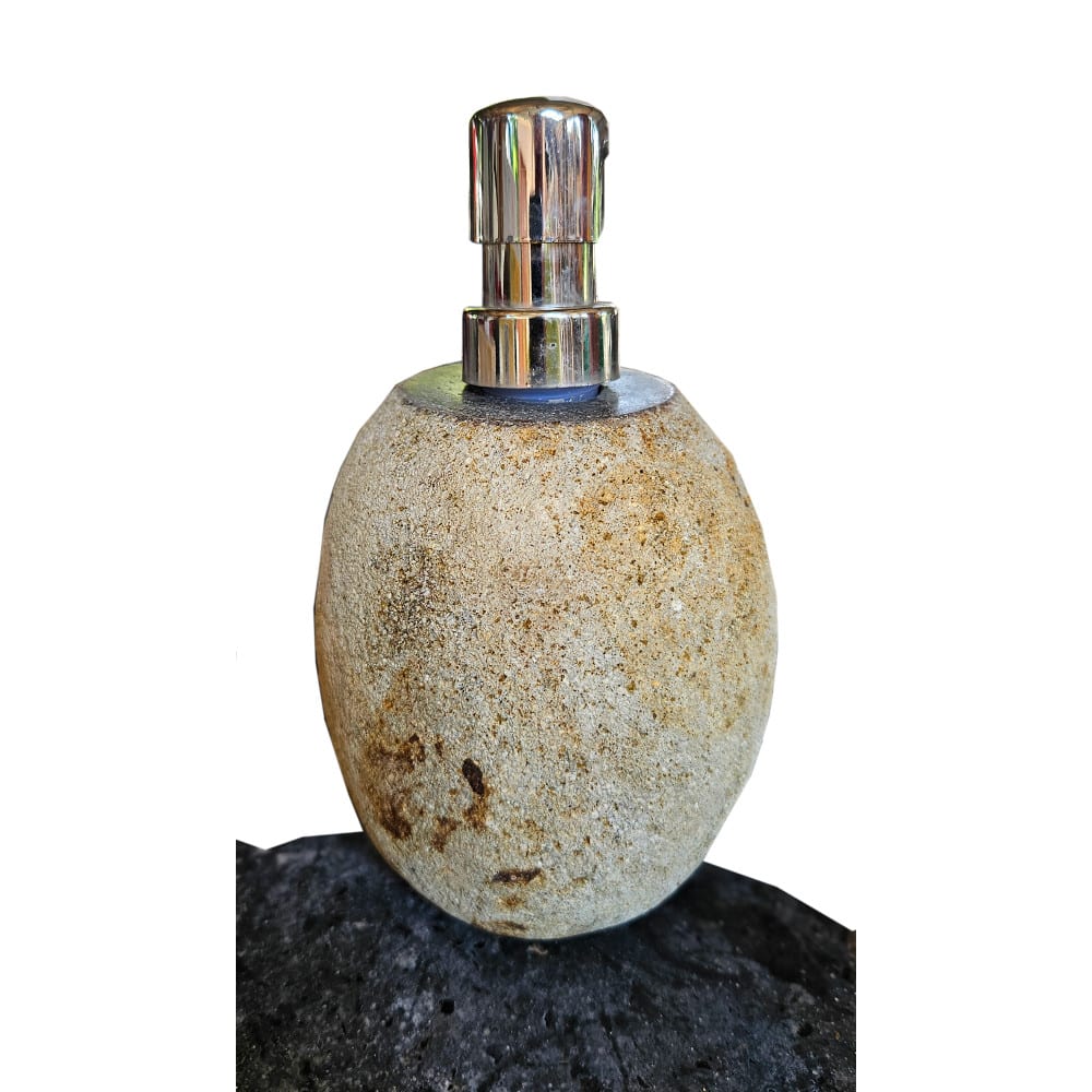 Santi Seifenspender: Handgefertigte Pumpflasche aus echtem Flussstein, rund, 18 cm