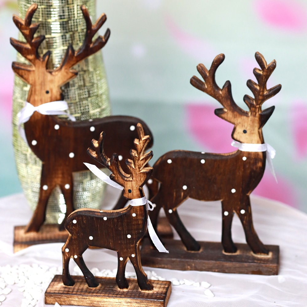 Weißes Rentier-Set aus Holz (3-teilig)