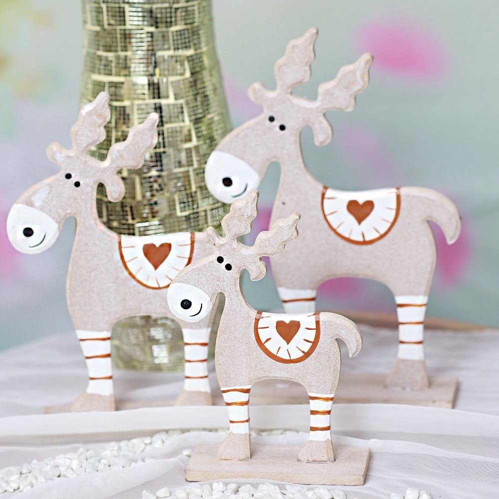 Set aus 3 hellbraunen Rentieren aus Albesia-Holz