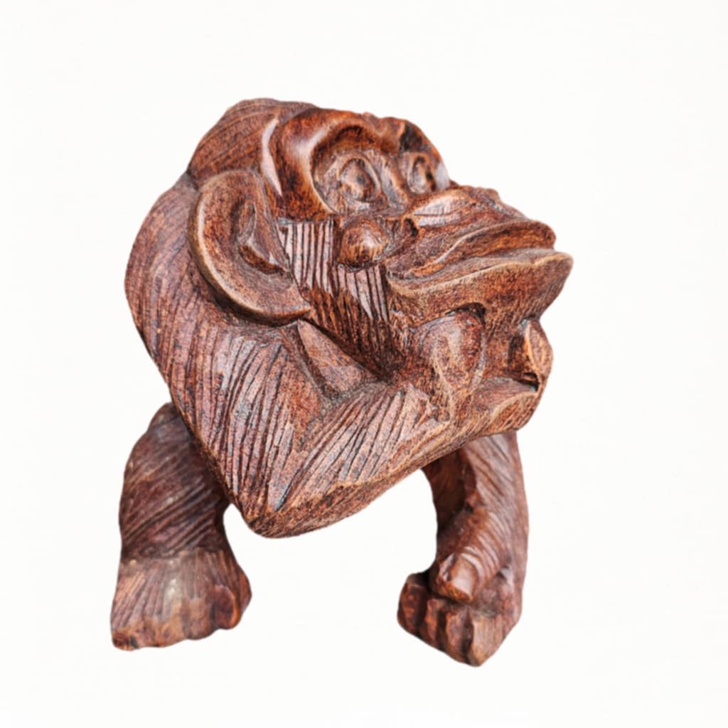 Tafsir Affe aus Suar Holz – Fein geschnitzte, nachdenkliche Figur, 20 cm