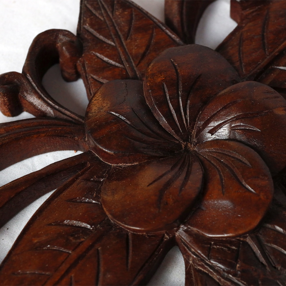 Setzen Sie stilvolle Akzente in Ihrem Zuhause mit dieser handgefertigten Wanddekoration aus hochwertigem Teakholz. Das kunstvolle Frangipani-Design mit 30 cm Durchmesser bringt exotischen Charme und balinesische Eleganz in jeden Raum.