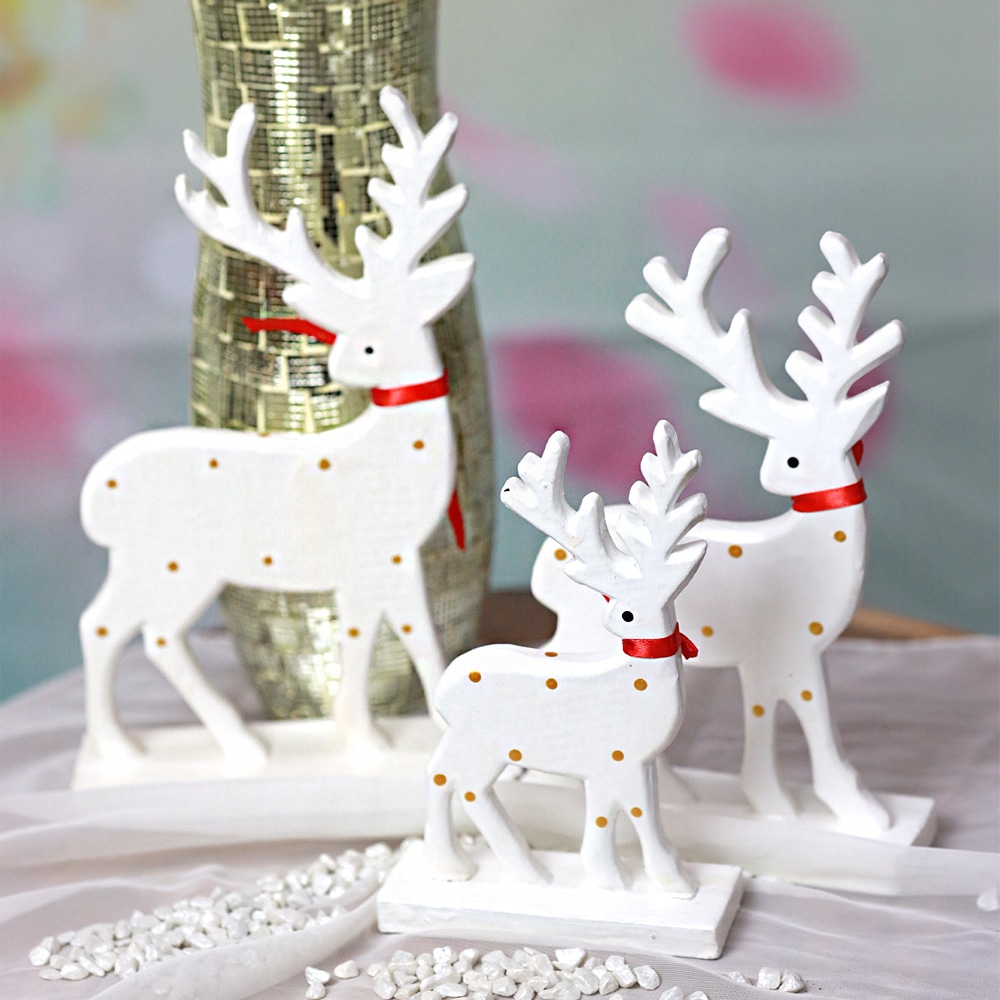 Weißes Rentier-Set aus Holz (3-teilig)